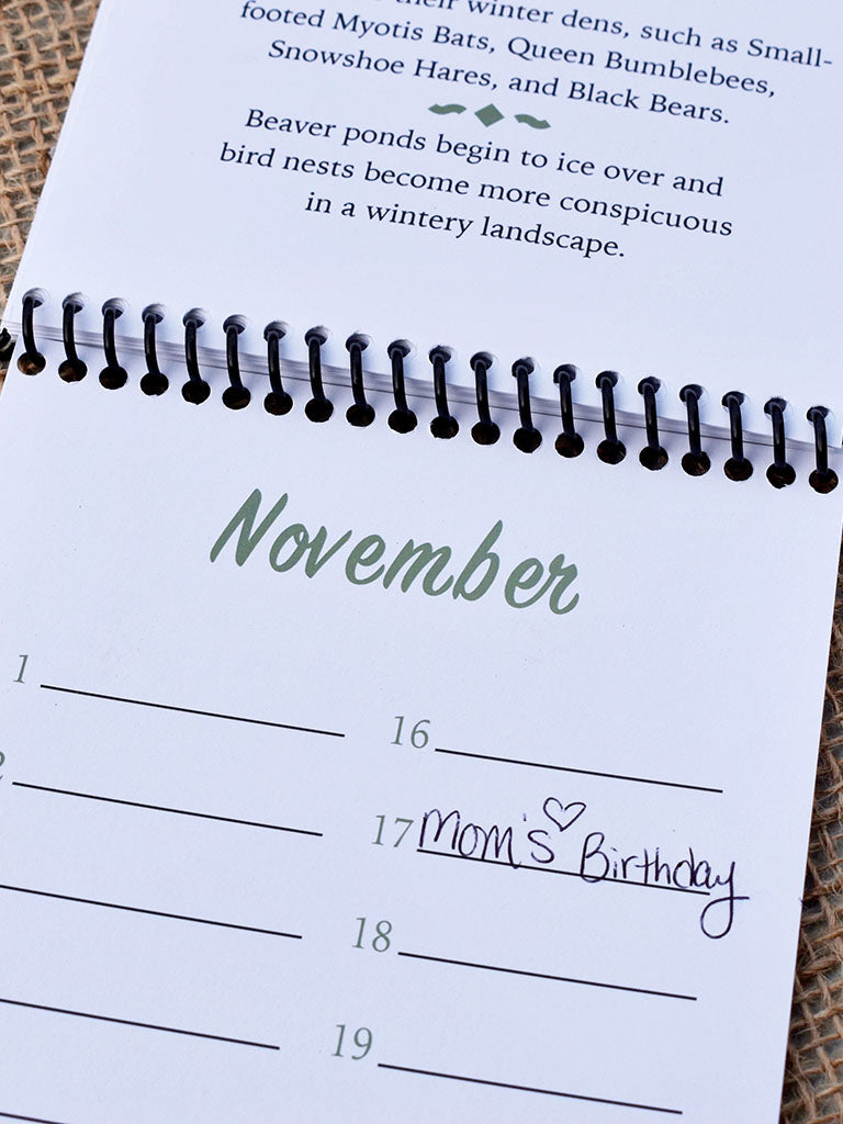 A birthday and anniversary calendar, so you can use year after year to remember your favorite dates.