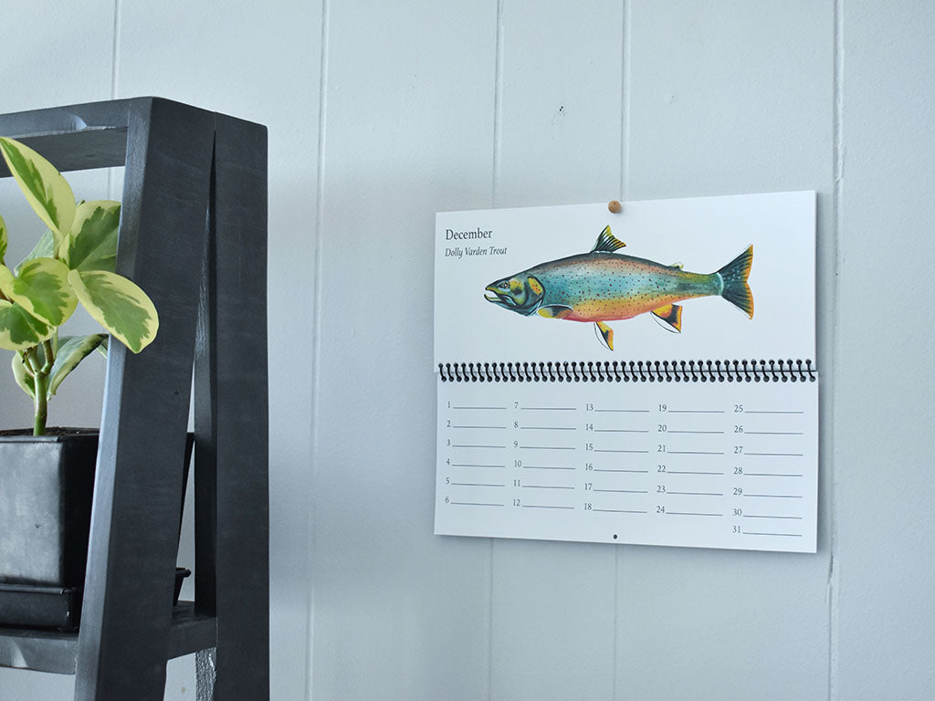 Paintings include: Lake Trout, Softmouth Trout, Brook Trout, Yellowstone Cutthroat Trout, Rainbow Trout, Flathead Trout, Apache Trout, Ohrid Trout, Marble Trout, Golden Trout, Brown Trout, and Dolly Varden Trout
