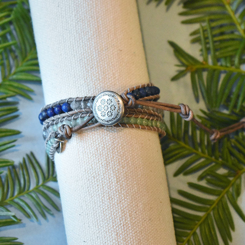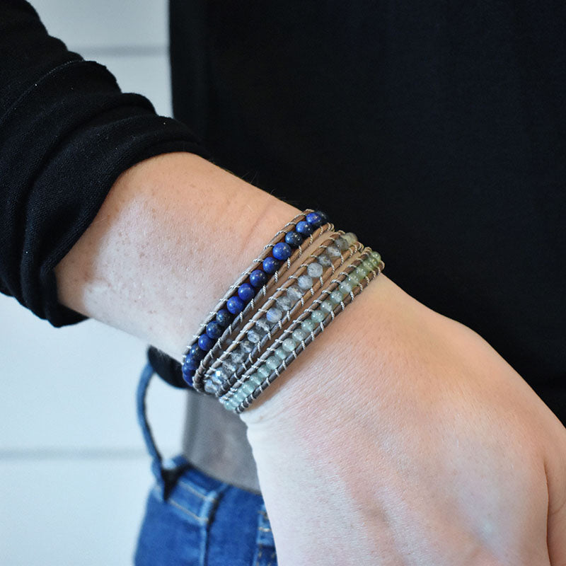 - Gemstone beads: Lapis, Labradorite, and Aventurine